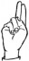 На ћирилици написано КОЈАДИН ЧЕНЕДИЋ састоји се из 14 слова [?]. Исписано ћириличном једноручном азбуком за глувонеме: